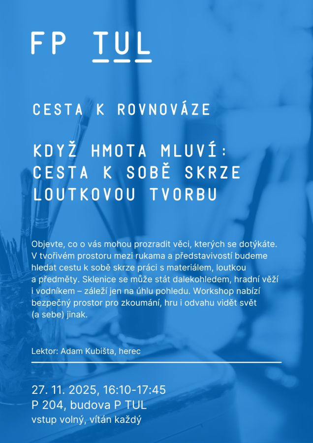 27. 11. 2025 od 16:10 v P204 začnete vidět svět jinak - Když hmota mluví: cesta k sobě skrze loutkovou tvorbu.