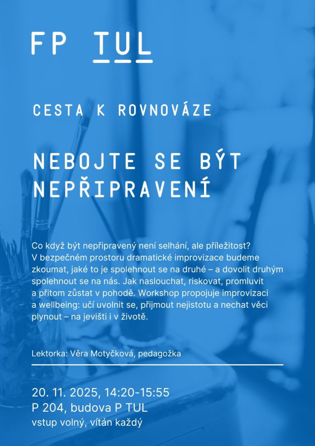 20. 11. 2025 od 14:20 v P204 si budete moct zaimprovizovat na workshopu Nebojte se být nepřipravení.