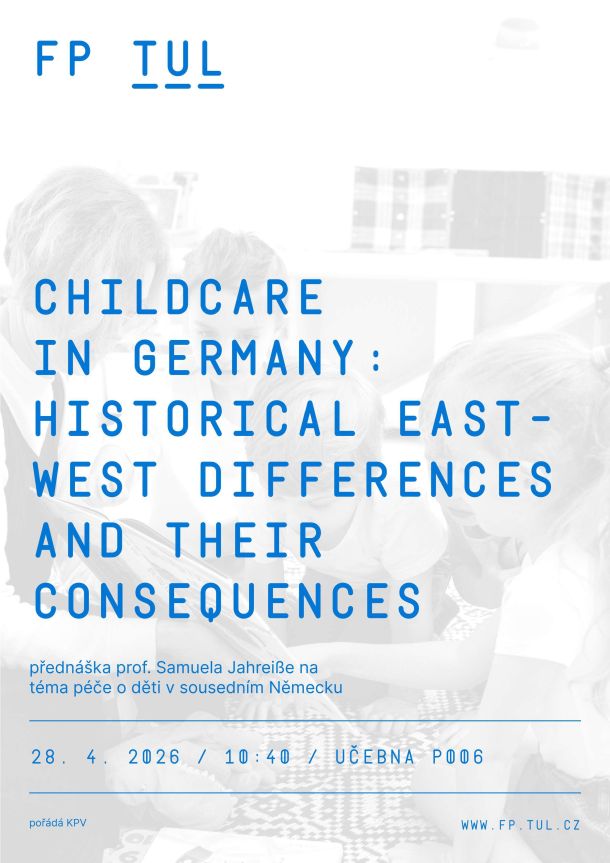 KPV srdečně zve na přednášku prof. Samuela Jahreiße, která se uskuteční dne 28. 4. 2026 v 10:40h v učebně P006 na téma Childcare in Germany: Historical East-West Differences and Their Consequences