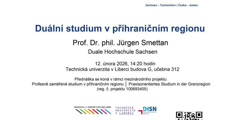 Srdečně zveme všechny zájemce na přednášku prof. Jürgena Smettana na téma duálního studia v příhraničním regionu, která se uskuteční dne 12. února 2026 od 14:20 hod. na budově G, učebna G 312.