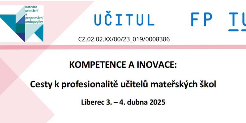 Ve dnech 3. a 4. dubna 2025 se v rámci programu OP JAK, projektu s názvem UčiTUL, registrační číslo projektu: CZ.02.02.XX/00/23_019/0008386, konala v prostorách budovy P Technické univerzity v Liberci celostátní konference věnovaná vznikajícímu kompetenčnímu rámci absolventa oboru učitelství pro mateřské školy.