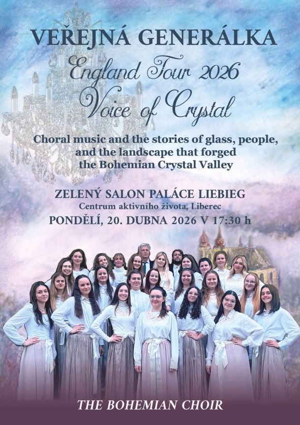 Příběhy českého křišťálu, rubínu a granátu se spojí s příběhy slavných sklářských rodů a světovou i lidovou sborovou tvorbou do jednoho celku, který Vás provede po cestách našeho kraje a dotkne se Vašich srdcí zpěvem i slovem.
